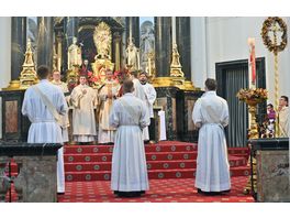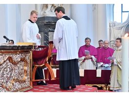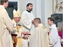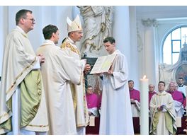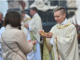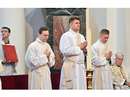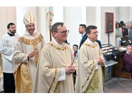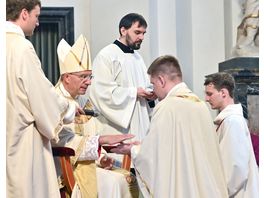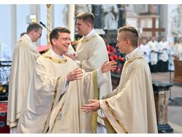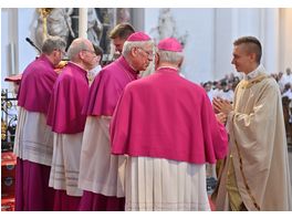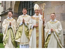 Die Neupriester Marcel Krawietz, Daniel Schier und Andreas Szumski werden im Bistum Fulda an den Orten als Kapläne eingesetzt, an denen Sie bisher als Diakone tätig waren: im Hessischen Kegelspiel, in Kassel und Bruchköbel. - Musikalisch gestaltet wurde der Weihegottesdienst vom Fuldaer Domchor unter der Leitung von Domkapellmeister Franz-Peter Huber. An der Domorgel spielte Alexander Grün (Bingen).