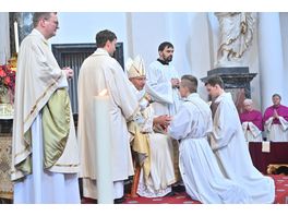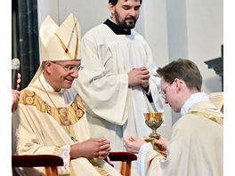 In einem feierlichen Pontifikalamt im Fuldaer Dom hat Bischof Dr. Michael Gerber am Samstag Marcel Krawietz, Daniel Schier und Andreas Szumski zu Priestern geweiht. Der Bischof spendete die Weihe durch Handauflegung und Gebet. In seiner Predigt stellte er die geistliche Grundhaltung und zentrale Bedeutungselemente des priesterlichen Dienstes in den Mittelpunkt.